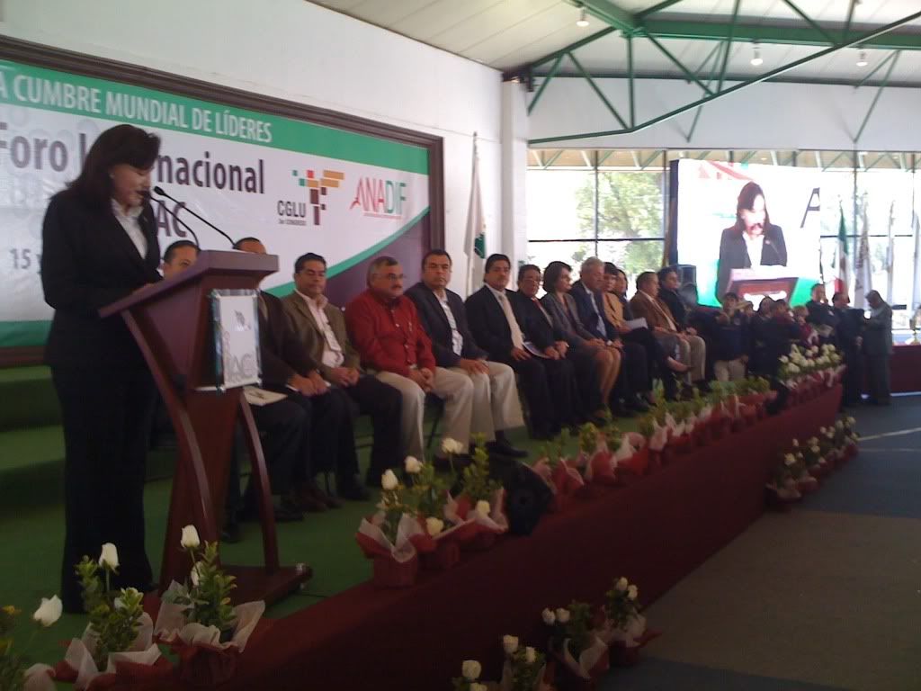 La Asociación de Municipios de México A.C. AMMAC. Celebra su II Foro Internacional hacia la cumbre mundial de AMMAC Azucena Olivarez Villagómez reafirma el compromiso de impulsar el desarrollo económico de los municipios de la república mexicana fortaleciendo la creación de empleos en donde se generen los mejores condiciones para la población por que tenemos una deuda con el país y los 2 mil 400 municipios para lograr la eficiencia se debe capacitar a presidentes municipales, regidores y síndicos quienes serán capacitados a través de AMMAC para lograr el progreso y bienestar de los gobiernos municipales